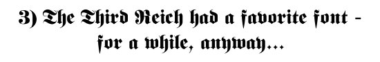 The original “font Nazis” were the actual Nazis. The most thorough totalitarians in world history didn’t overlook typography, either. See that armor-plated Germanic script up there, the kind of type that seems to be sneering at you from behind a monocle? The Nazis insisted that it was the only typeface suitable for pureblooded Aryans to read. Until, at least, a couple of years into World War II, when the cost of producing that heavy, resource-intensive type got too high to justify. Presto: the Nazis decided that the previously mandatory Germanic script had actually been Jewish all along.