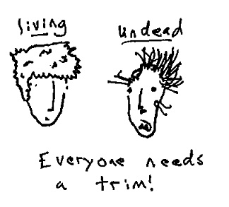 - Dead, alive, or sort-of in-between, everyone needs haircuts. Think about that!
