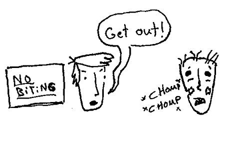 - Enforce a “No Biting Employees” policy now. Then later, if you kick a zombie out because they try to bite you, they can’t claim that you’re discriminating against them for one of their long-standing customs.